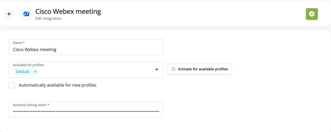 Enter your Webex token (https://developer.webex.com). You can access the portal with your account credentials.